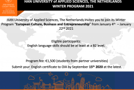HAN University, The Netherlands invites you to join its Winter program from January 4th – 22nd 2021.